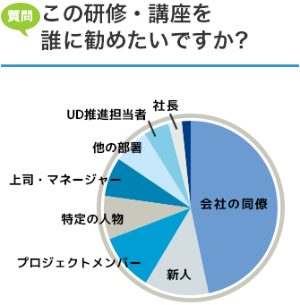 - UDについての講義ができる上に、ビジネスの視点に立ったレクチャーもできる方で、とてもよかったと思う。(50歳女性)